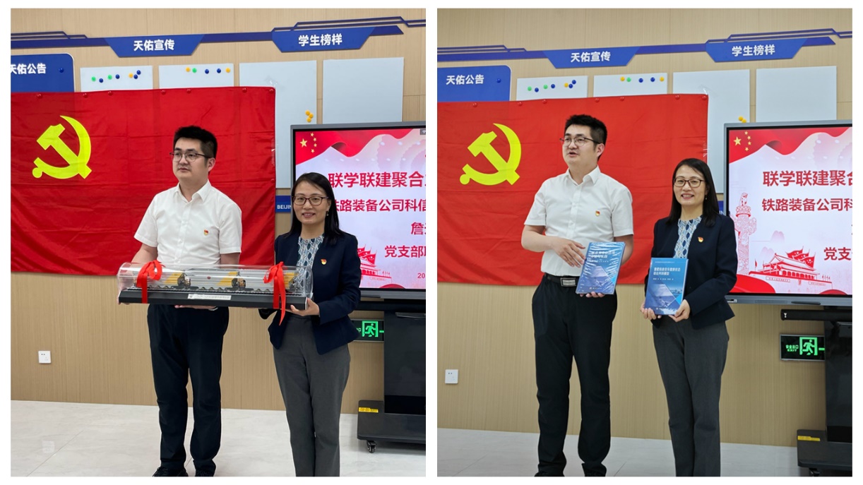 国能铁路科技公司科信部向太阳网集团tcy8722赠送了体现最新重载铁路货车技术的KM81车辆模型以及货车状态修理论专著,鼓励同学们结合具体工程实际在轨道交通领域开展深入研究。