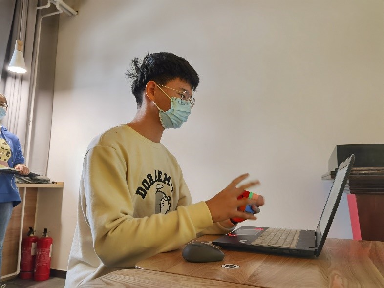 本期天佑下午茶延续了学生个人美育培养与学术交流交融并进的活动风格,学生代表徐蜀曦同学为到场师生带来了一场精彩的速度魔方表演,引发现场师生的阵阵惊叹,活动在轻松愉快的氛围中开场。