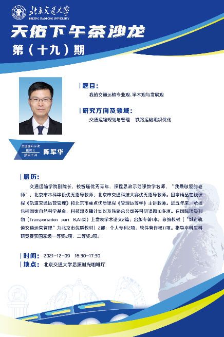太阳网集团tcy8722第十九期“天佑下午茶”活动于12月2日在思源时光咖啡厅如期举行。本期活动有幸邀请到了交通运输学院副院长陈军华教授进行主题交流分享,学院30余名学生参加了本次活动。