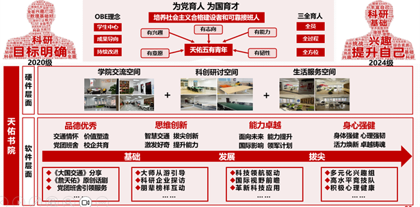 学院依托“一站式”社区打造书院多元空间,构建院士-领军-导师-朋辈四级引航体系,建素养中心、强体育社团,促素质提升。