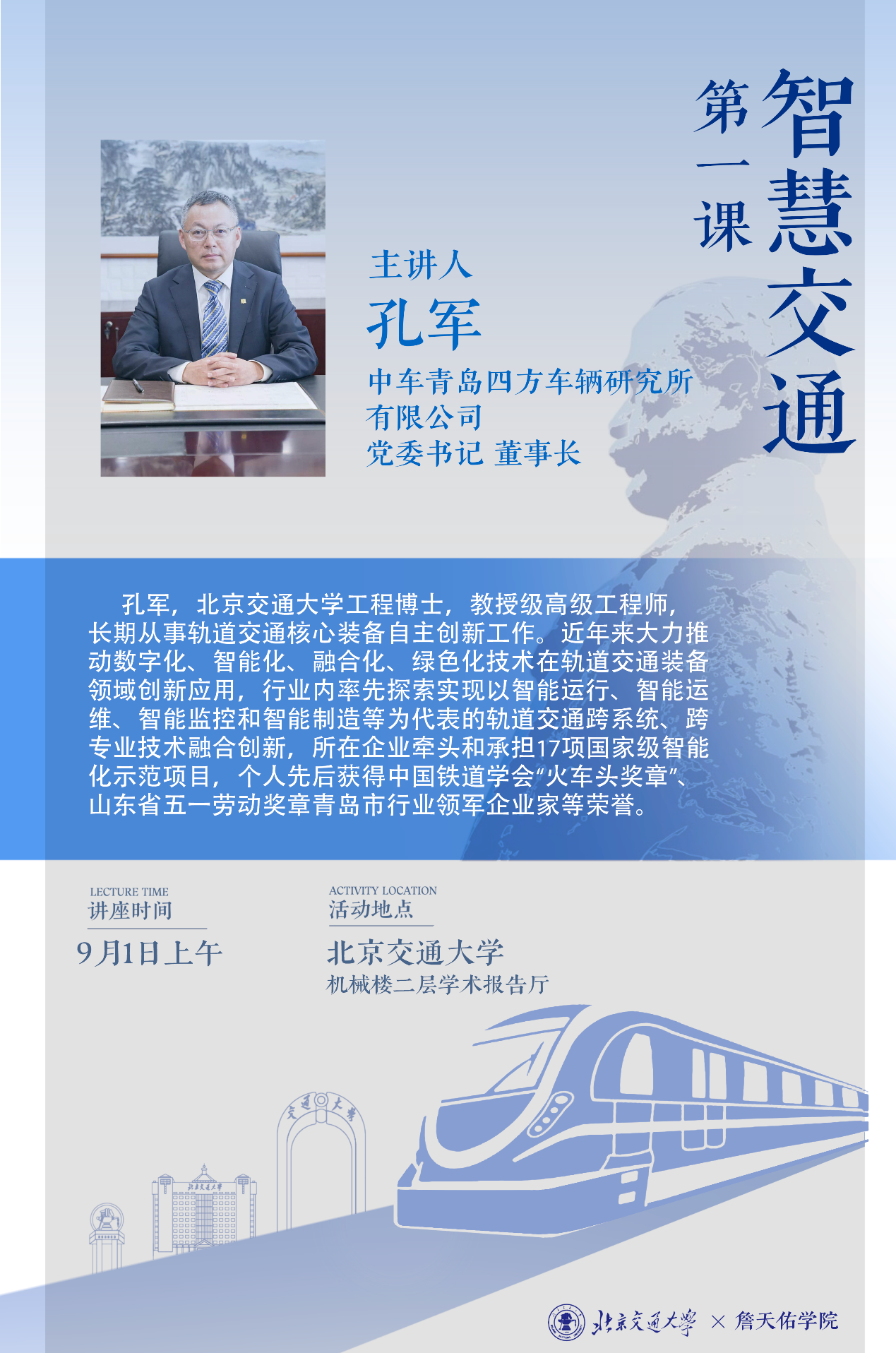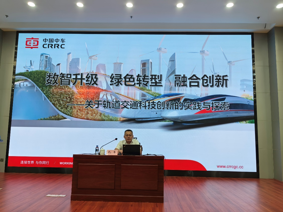 9月1日上午,太阳网集团tcy8722邀请了中车青岛四方车辆研究所有限公司党委书记、董事长孔军在机械楼二层学术报告厅开展智慧交通第一课。学院常务副院长、党支部书记史红梅,副书记、副院长王新羿,副院长李清勇和全体2024级本科新生参与分享交流。