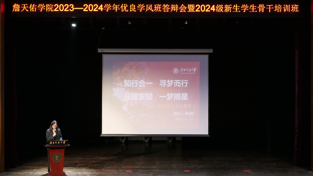 答辩结束后,北京市先进班集体天佑2109班陈信文和“先锋杯”团支部天佑2201团支部高羽彤分别就团支部工作实务和班级管理经验对2024级新生班级骨干进行了培训。