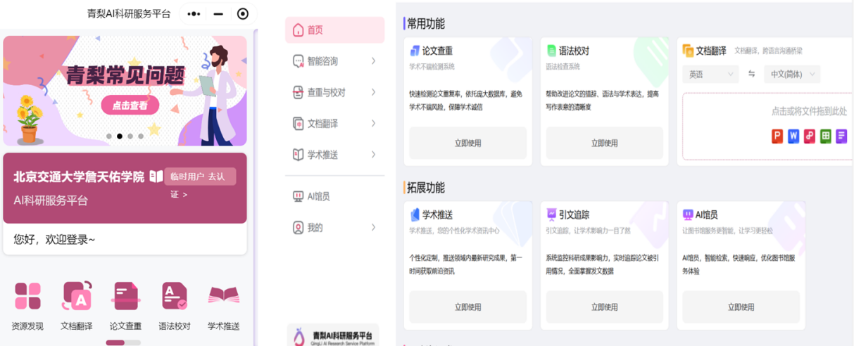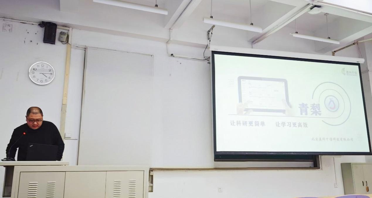 李文向同学们展示了青梨AI科研服务平台、ChatLibrary AI等相关工具,用AI的智能语义发现、深度文档解析、深度数据智能分析、多语种智能翻译与语法校对、智能演示文稿(PPT)生成、智能学术写作以及多模型语言互动等核心功能助力广大天佑学子学术科研。