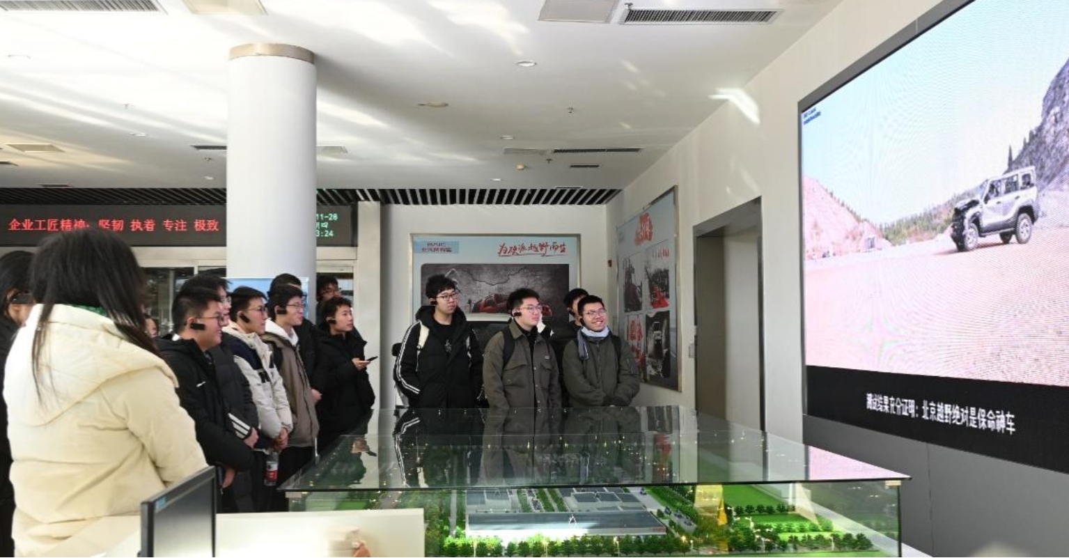 活动在越野车工厂的沙盘讲解中拉开序幕。讲解员详细介绍了工厂的整体布局和未来发展规划,使同学们对北汽集团越野车公司的发展理念和技术创新有了更深入的了解。