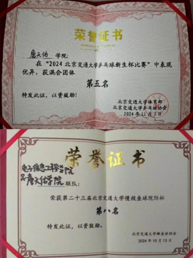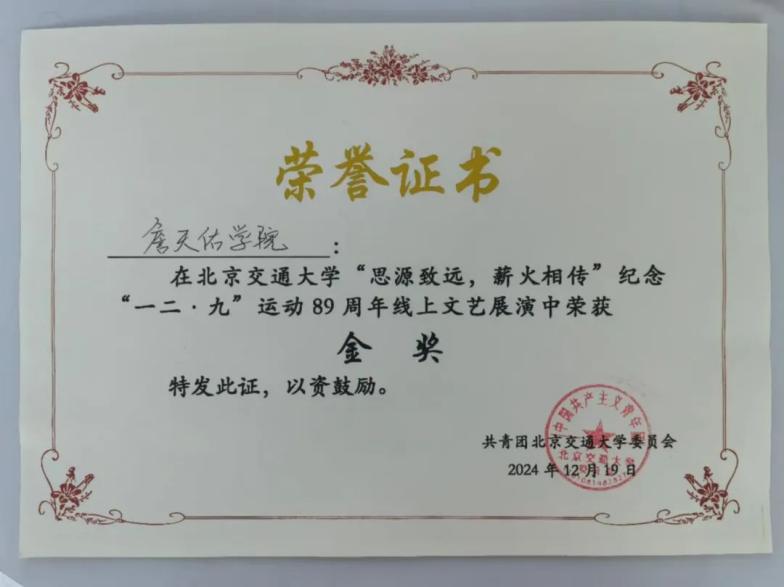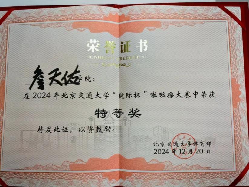 9月19日,天佑2107班杨佳瑶荣获北京交通大学