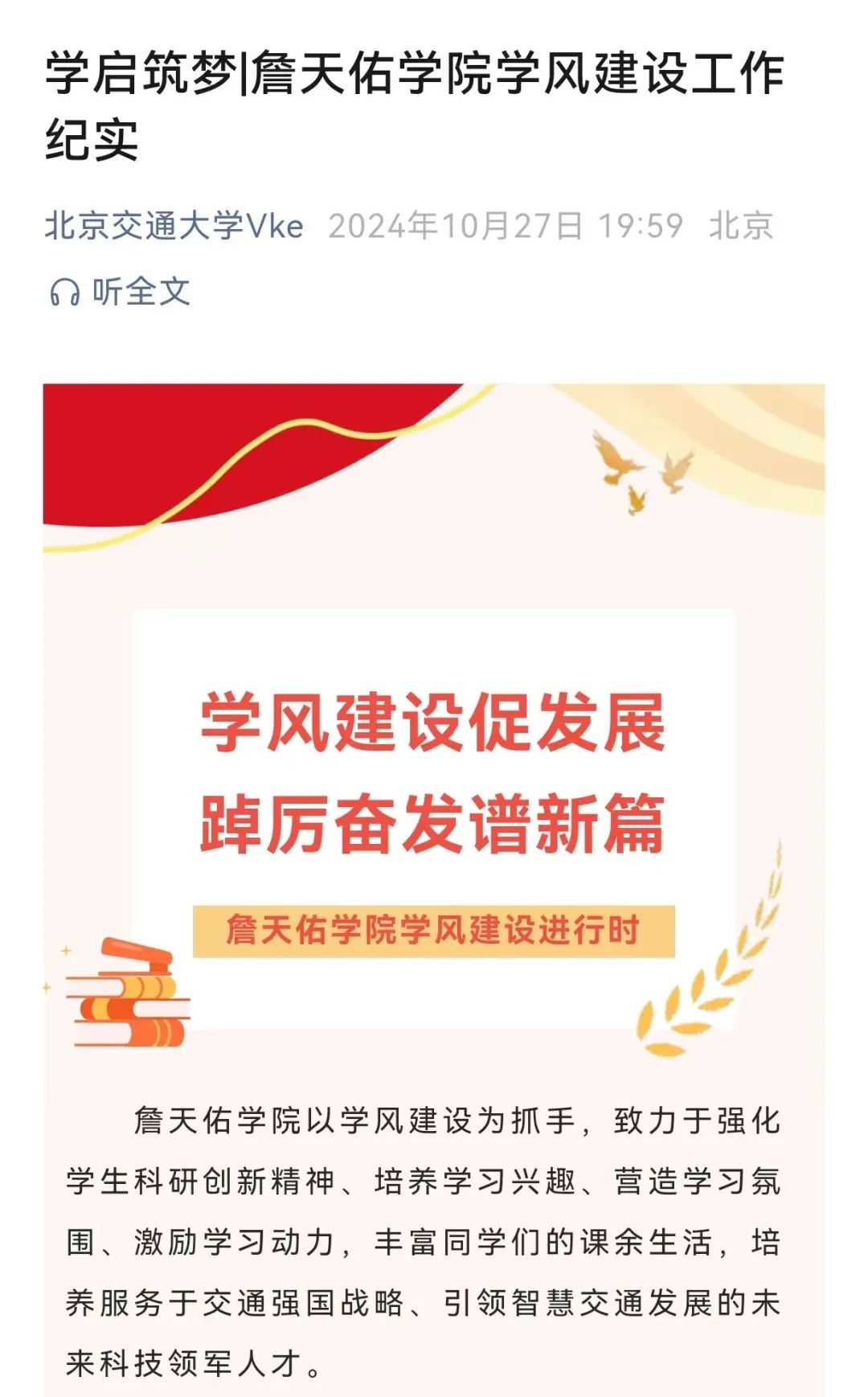 北京交通大学学生工作处官方公众号VKE上推出
