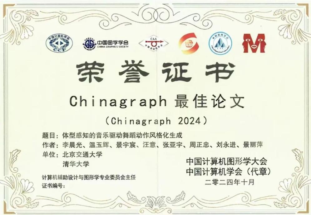 荣获Chinagraph最佳论文