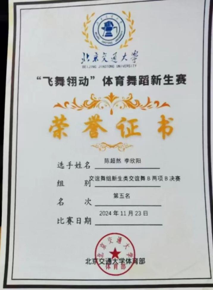 学院荣获体育舞蹈新生赛第五名