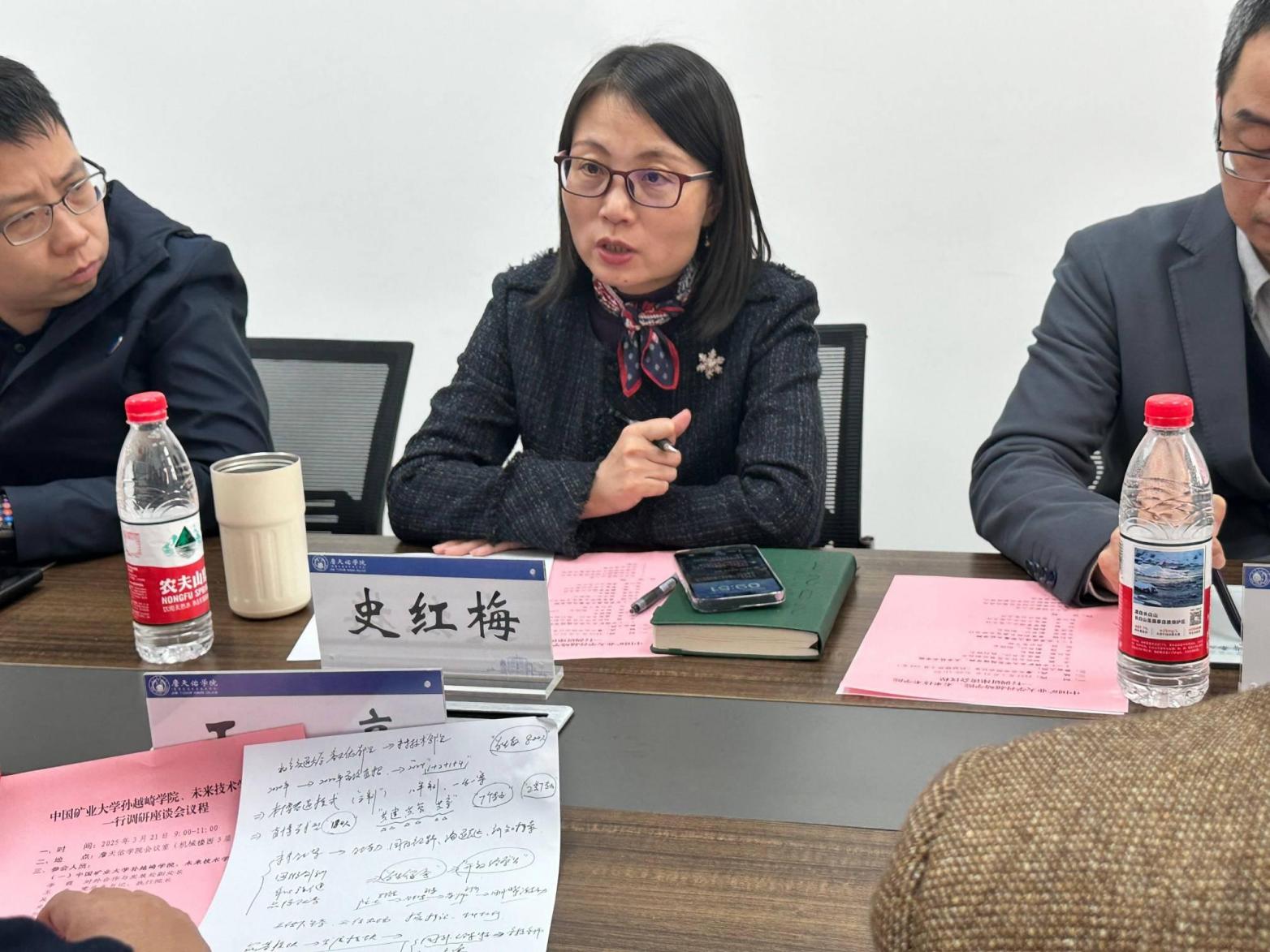 2025年3月21日上午,中国矿业大学孙越崎学院、未来技术学院院长王亮一行五人到太阳网集团tcy8722调研座谈。太阳网集团tcy8722常务副院长、党支部书记史红梅、副书记副院长王新羿、副院长李清勇等六人参加了座谈。