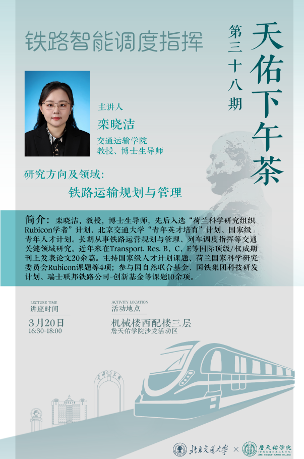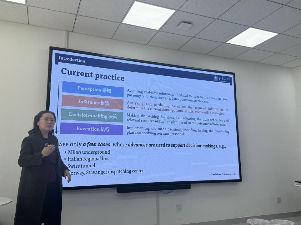 栾晓洁教授围绕铁路系统终端中如何通过计划运行图和实时铁路调度相结合的问题,展示了列车调度指挥的具体计划与工作内容,介绍了铁路调度中所面临的困难与挑战,并对未来的研究进行了展望,加深了同学们对铁路运输规划与管理领域的了解。