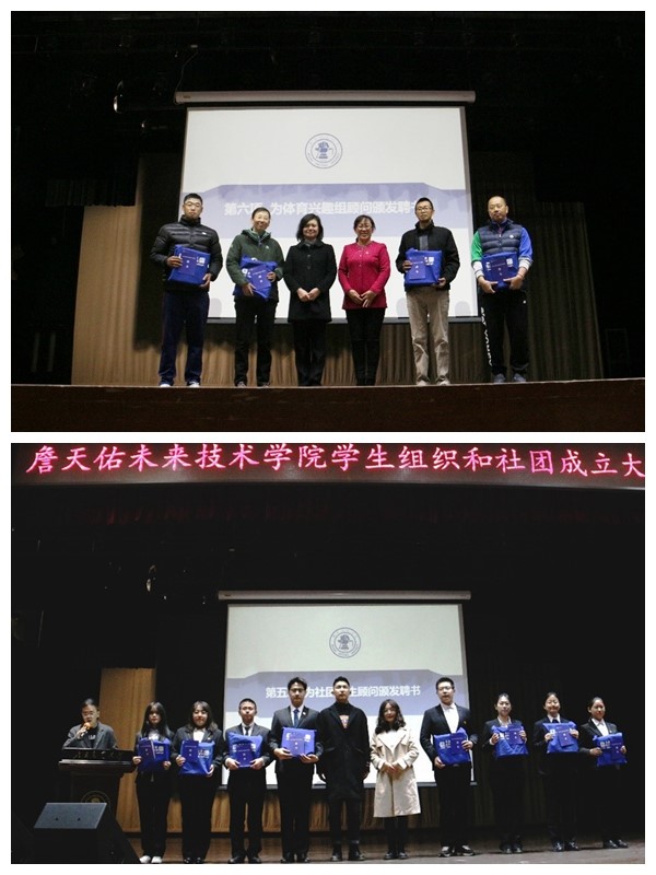 体育部崔迎春书记、学院闻映红书记为学生体育兴趣组顾问代表林立文、陈永发、王利利、张汉峰颁发了聘书,感谢各位老师在育人工作特别是学生身心健康方面的积极奉献。校学生会轮值主席郭旗、校研究生会轮值主席李晨同学,共同为参与育人活动和社团建设的来自各学院高年级学生代表颁发特聘顾问聘书。