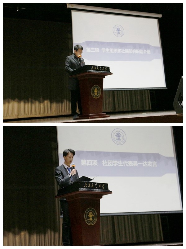 校团委曲斌副书记为学生组织和社团成立致辞。他对社团成员提出了“树立服务和奉献的意识,俯下身子,沉下心来,在服务中成长、在奉献中进步、在履职中实现个人的全面发展”等殷切希望和勉励。