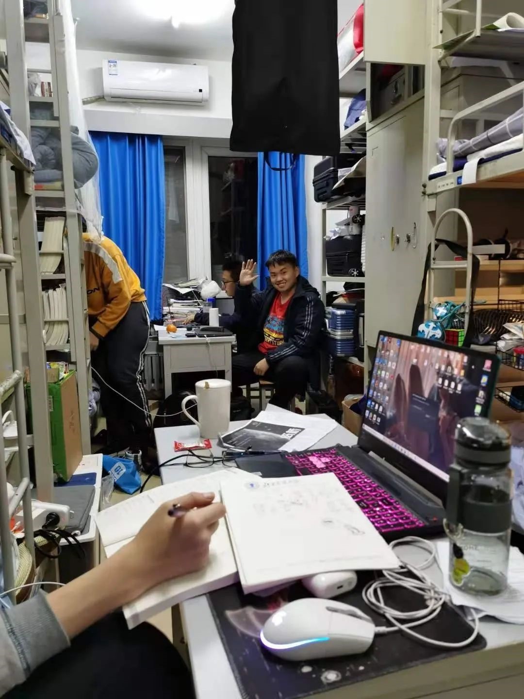 东5-305汇集了来自四海八方的六个精神小伙,拥有着被充分利用的空间和数不清的零食。这个宿舍每日充斥着必需的商业互吹和快乐玩笑,随时会爆发出对于学习的“积极探讨”和“狂野咆哮”。这是一间来自“异世界”的、气质一块拿捏得死死的寝室(doge)。